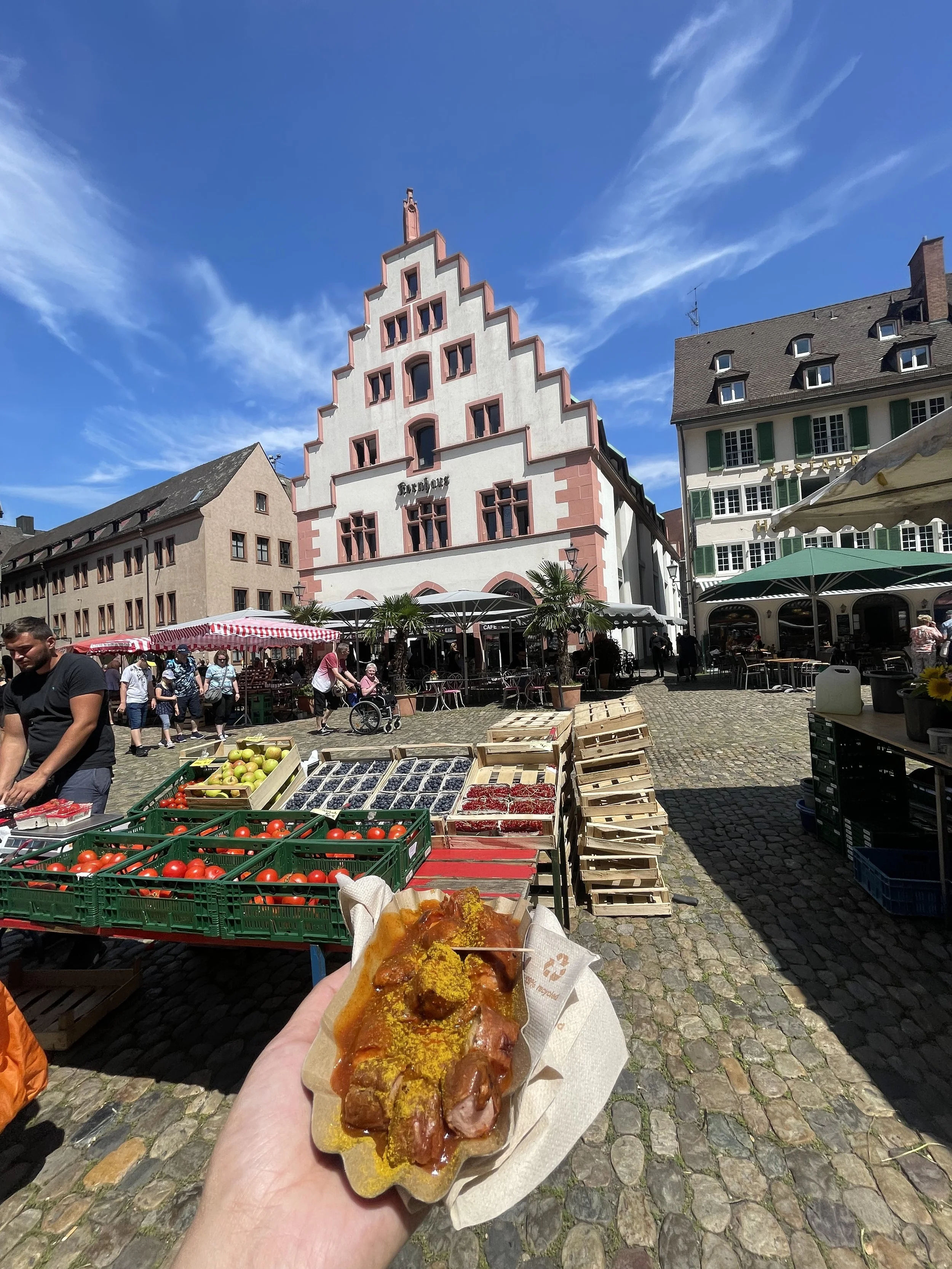 Currywurst in hand, sunshine on MΓΌnsterplatz β Freiburg at its finest.